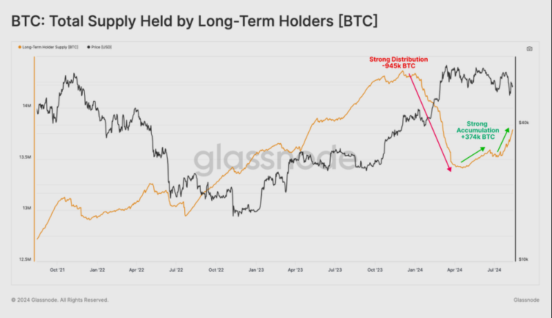 El comportamiento de los tenedores a largo plazo también está cambiando de rumbo. Los LTH están mostrando una renovada propensión a aferrarse a sus activos después de vender durante la subida del ATH. Solo en los últimos tres meses, más de 374.000 BTC han cambiado a estado LTH. Eso significa que una gran parte de los inversores están optando por mantener en lugar de vender, y podría ser el desarrollo para apuntalar el precio de Bitcoin en los próximos meses.