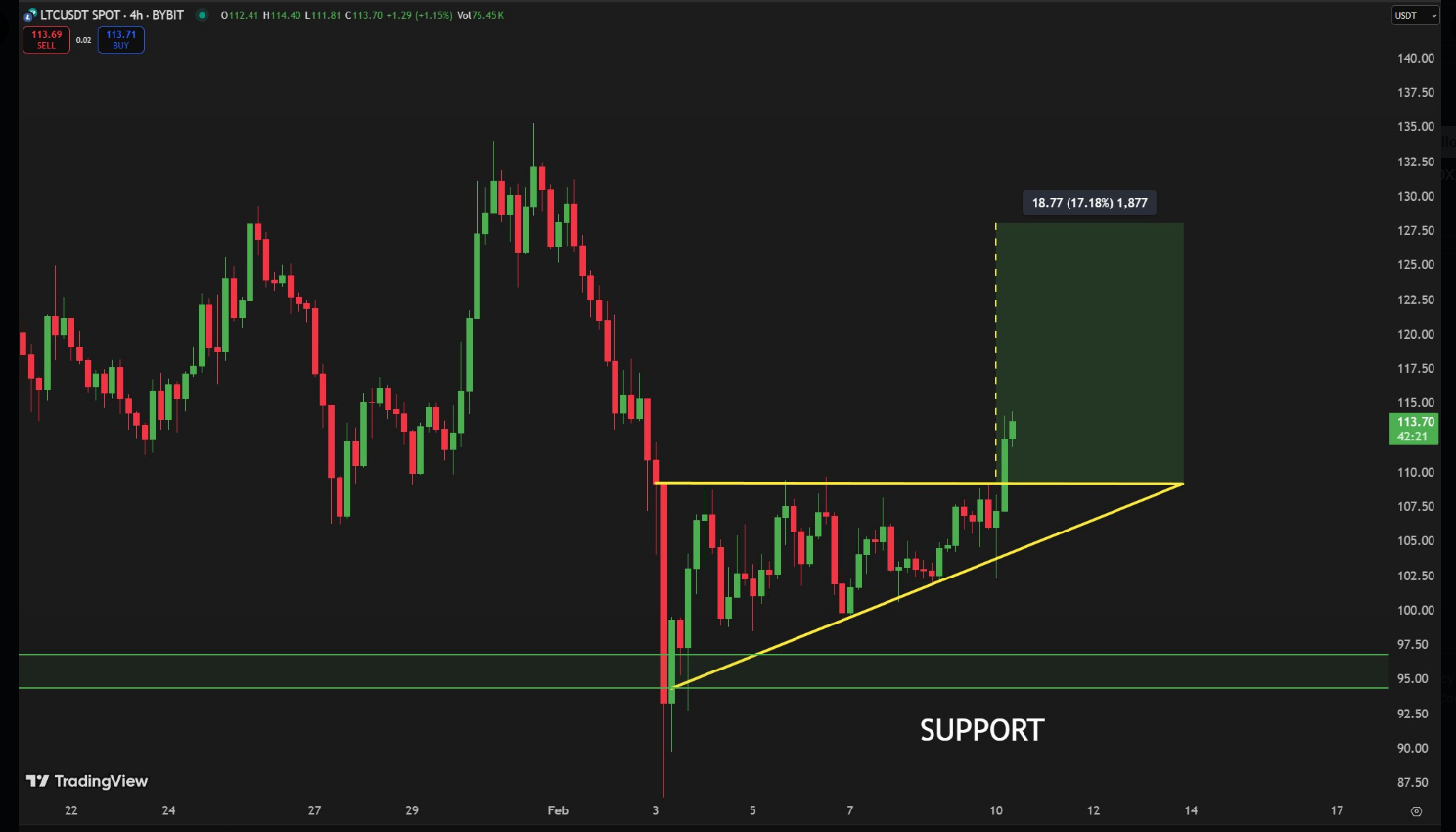 🧨 $LTC está saliendo de este triángulo ascendente como se predijo. ¡El objetivo es 128 dólares!