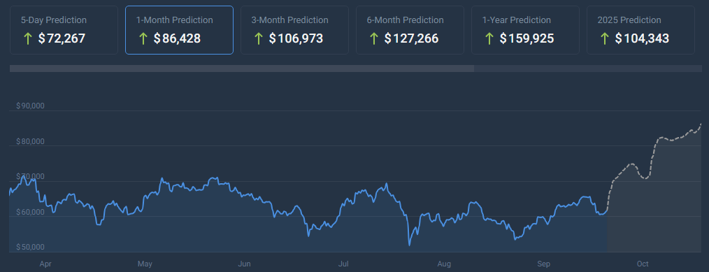 Bitcoin se desplomó a unos 59.000 dólares cuando la crisis de Medio Oriente empeoró, y luego se recuperó un poco, pero es probable que continúe la volatilidad. A pesar de esta incertidumbre, la última predicción del precio de BTC de CoinCodex ofrece una enorme ganancia del 40% en el precio del criptoactivo, que podría alcanzar los 86.428 dólares en noviembre de 2024.