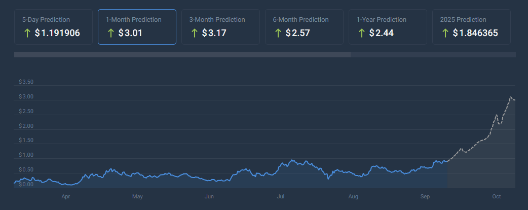 ¿Qué tan alto puede llegar realmente Popcat ahora que todas estas señales apuntan a una trayectoria ascendente continua? El optimismo de los analistas es cauteloso. Los pronósticos indican que POPCAT podría alcanzar los 2 dólares para fin de año, dando a los primeros inversores una ganancia de más del 100% si las condiciones del mercado siguen siendo positivas.