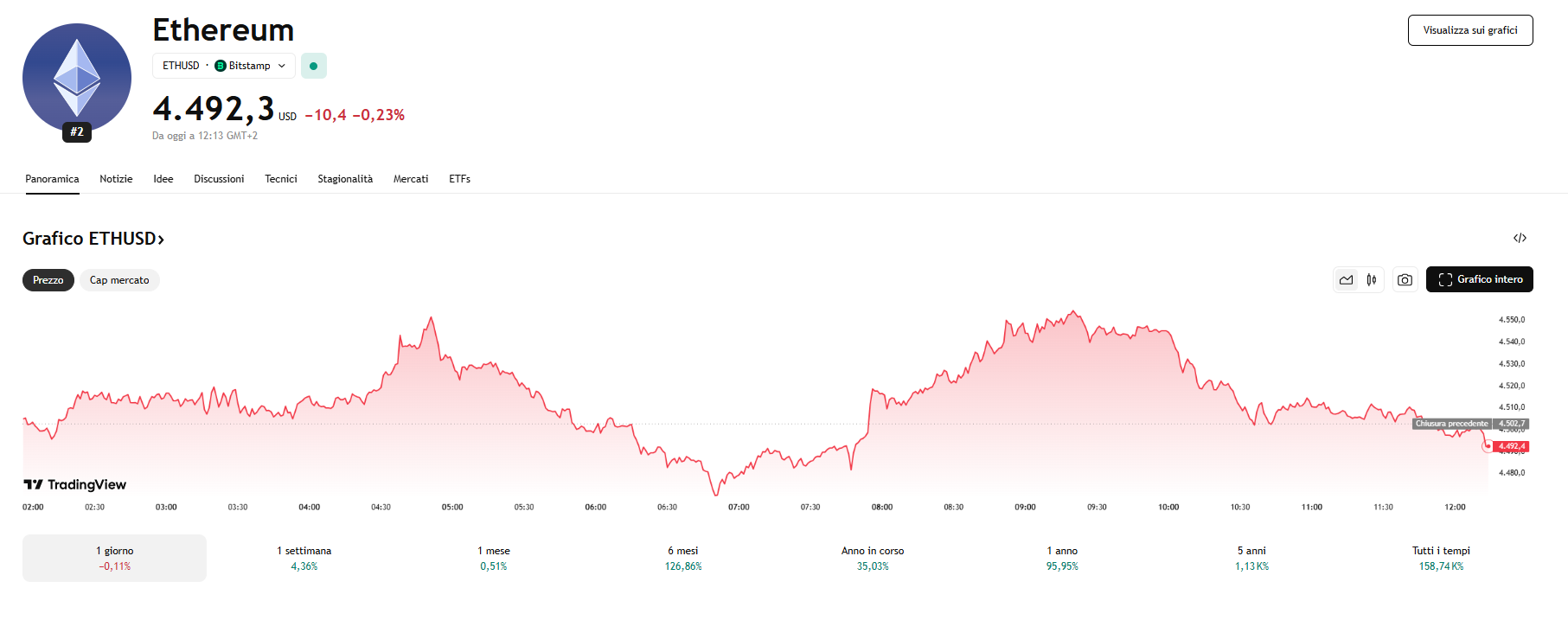 En el momento de escribir, ETH se cotiza a 4.492 $*, con un aumento del 5% en la semana*. En comparación con los récords, la altcoin todavía está casi **10% por debajo del máximo histórico**.