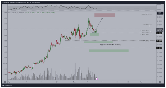El experto en criptomonedas Michael Van De Poppe predijo que el precio de SUI podría subir hasta 2,50$ bastante pronto. Él observó que la moneda logró un fuerte repunte en el nivel de precio de 1,79$. De acuerdo con esto, espera que el precio continúe hacia nuevos máximos, alcanzando potencialmente entre 2,20$ y 2,50$.