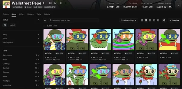 El volumen de negociación secundario de la serie NFT de Wall Street Pepe se acerca a los $30,000
