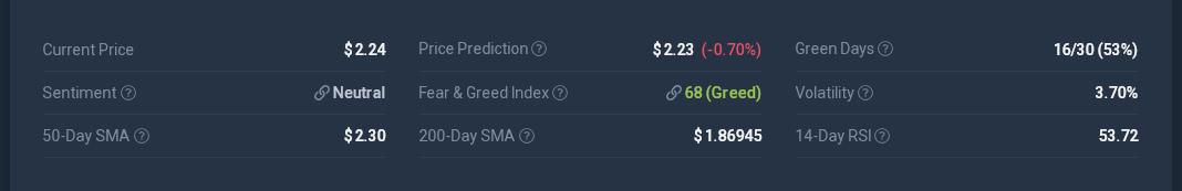 Se espera que XRP caiga ligeramente, alrededor del 0.70%, con proyecciones que sitúan su valor en $2.23 para el 17 de julio de 2025. Los indicadores actuales pintan un panorama de mercado neutral, aunque el Índice de Miedo y Avaricia se inclina fuertemente hacia la avaricia con una puntuación de 68.