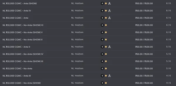 在平臺高峰時段,這家離岸加密撲克網站依託與美元錨定的穩定幣 USDT(等同真金美金)運行,面向全球玩家開放牌局。當前高額現金桌世界錦標賽已有多達 12 桌同時開打,級別為 50/100 USDT,高手雲集,火藥味拉滿。