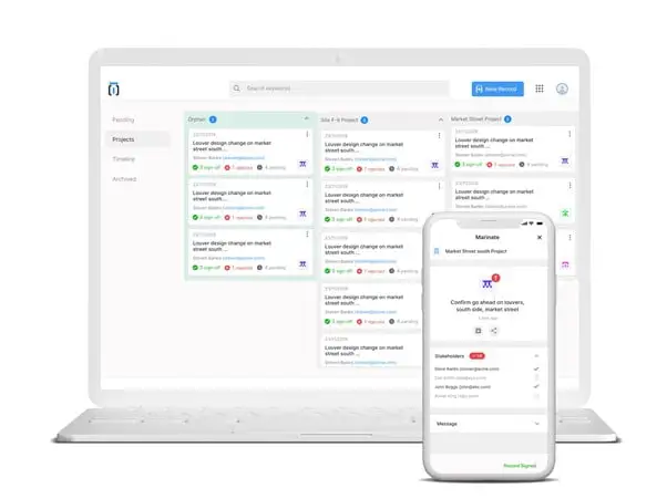 Remote work is a good example here. Marinate captures yes and no’s on the project milestones and records all the sign-offs to let team members coordinate approvals faster and be able to go back and check stakeholders’ response, no matter how they documented their work, or what collaboration suit their team or clients use. Or, take construction sites. Abound in confusion and delays, those are a constant source of stress and money loss for subcontractors. Marinate won’t require them to install yet another bulky construction software and capture change orders (up to $24B in dispute resolution cost annually!), or other reporting items from any baseline communication tool they’re using – email, text, and even a phone call.