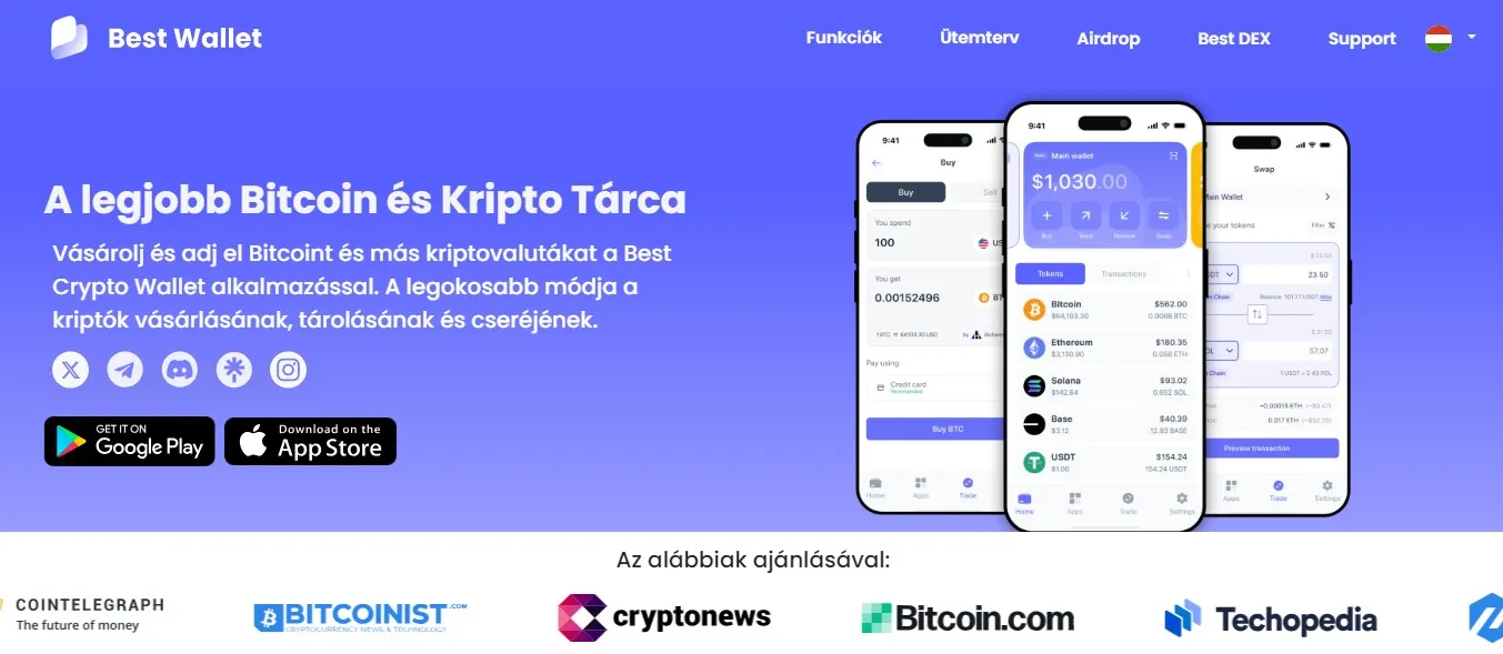 - Best Wallet – KYC mentes, sokoldalú kripto tőzsde és digitális pénztárca egyben