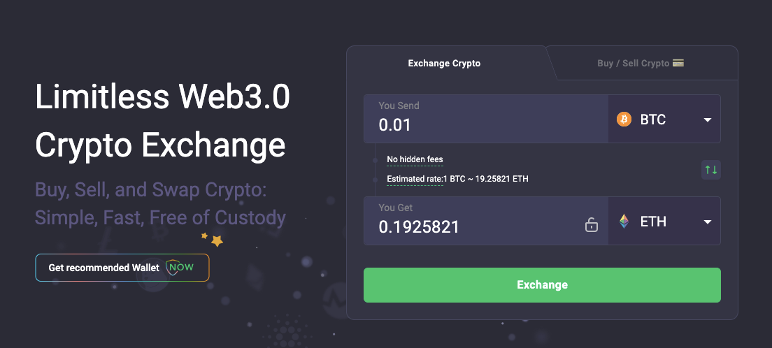 - ChangeNOW – Korlátlan számú kriptovaluta váltást tesz lehetővé, a gyorsaságra és az egyszerűségre fókuszálva, KYC nélkül