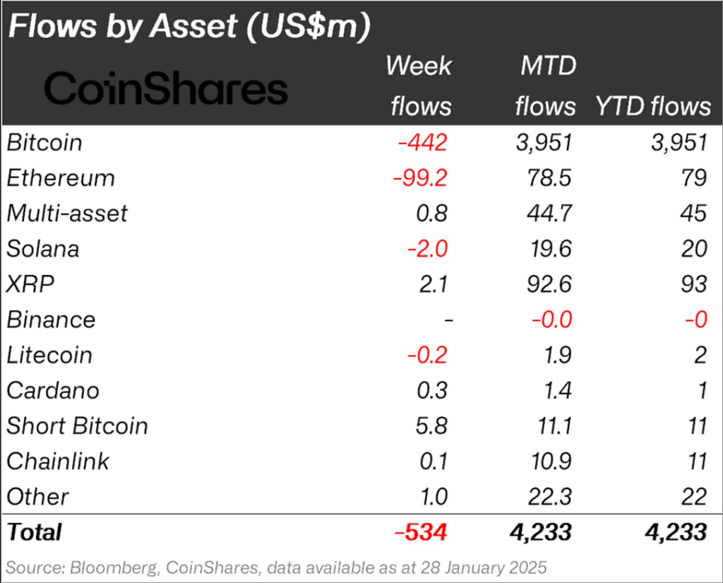 Yesterday’s rout in the markets caused by the DeepSeek news caused investors to panic, prompting outflows from Bitcoin and Ethereum totalling US$442m and US$99m respectively. pic.twitter.com/7a01ZwUTu1