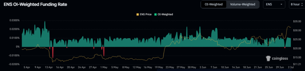 The excitement affected not only spot markets but also the future business. Measuring the whole value of current future contracts, the open interest has seen an unheard-of surge over $160 million. This suggests a significant rise in investor involvement and ENS-related speculating.
