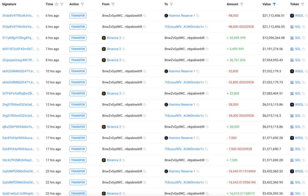 Lookonchain riporta che nelle ultime 24 ore due wallet di whale hanno prelevato un totale di 376.076 SOL (per un valore di circa 80,7 milioni di dollari) da Binance trasferendo i token su Kamino. Questa operazione non solo evidenzia la fiducia delle whale nel potenziale a lungo termine di Solana, ma segnala anche un trend più ampio nel mercato: gli investitori stanno ruotando capitale verso altcoin a grande capitalizzazione in vista di un rally.