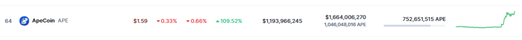At the moment, ApeCoin is trading at $1.58 and, during the last 24 hours, it increased by about 109%. Despite the great momentum and rising utility, prospects for the growth of ApeCoin in the decentralized environment seem pretty good.