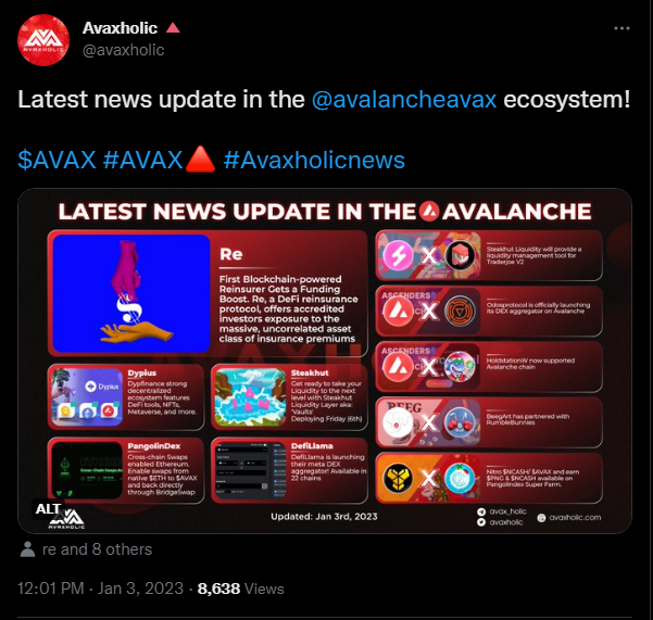 This is only the most previous on-chain development for the ecosystem. On a previous tweet by Axaholic, a Twitter account dedicated to Avalanche updates, the ecosystem partnered up with Re Protocol which tokenizes the reinsurance industry, empowering business through blockchain solutions.