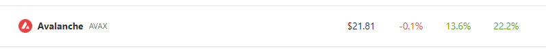 At the time of writing, according to tracking from Coingecko, AVAX is changing hands at $21.81 and has gone up by more than 13% over the last 24 hours.