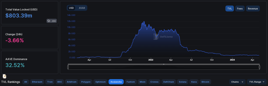 Recent data shows a sharp decline in the platform’s decentralized exchange (DEX) volume, falling from 311 million to 13.74 million in just a few months. This has had a direct impact on Avalanche’s total value locked (TVL), which has also seen a decline.