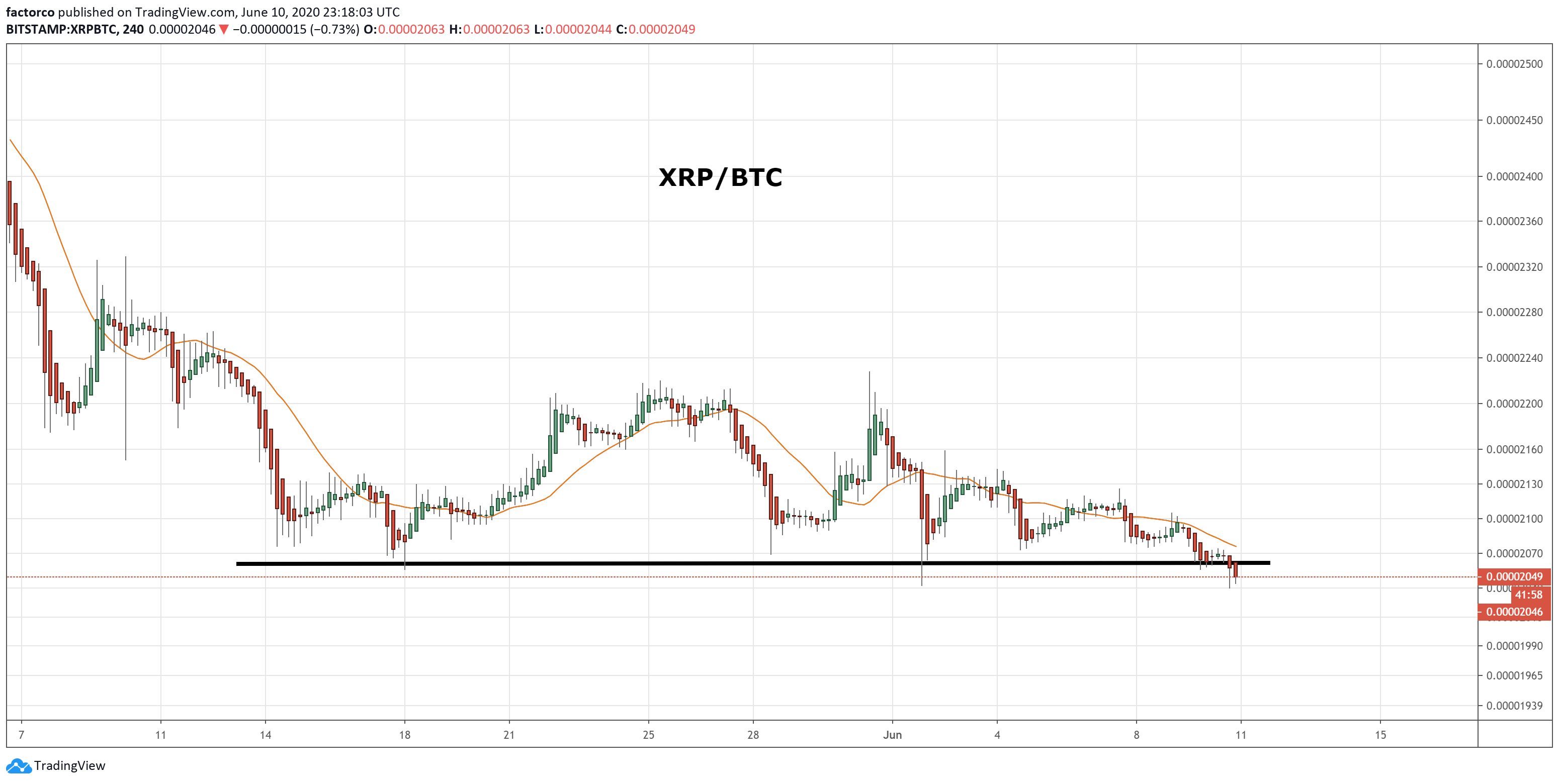 “Looks like Ripple Labs has blown the wad allocated to support XRPBTC at .00002060 to .0002075 levels. If ice-line cannot be reclaimed, look for new support at .0000194 on way to .0000145.”
