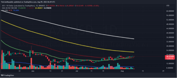 According to CoinMarketCap, AXS token trades at $18.06, or a dip of 4.29% as of this writing. AXS coin trading volume registered a drop of 0.4% or at 14 million. While the loss isn’t much, it still harbors the danger of eventually pulling the price further down. AXS’s market cap is at 0.09577.