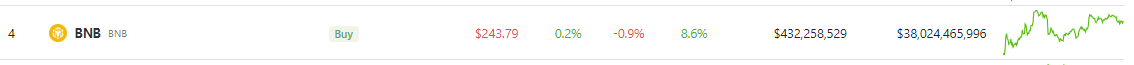 At CoinGecko, the current price of BNB stands at $243, reflecting a slight decline of 0.9% over the past 24 hours; however, it has experienced a notable seven-day rally of 8.6%.
