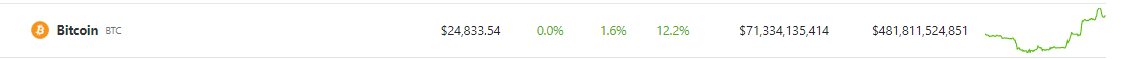 Bitcoin (BTC) was trading at $24,833 at the time of writing, down 8% from its intraday high of $26,502 on Tuesday morning, its highest level in nine months, according to data from crypto market tracker Coingecko.