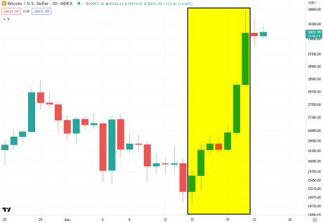 Bitcoin gains >= 18% in Seven Days | BTCUSD on TradingView.com