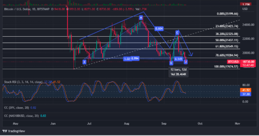 With a high of $22,400 on September 13 and a low of $18,790 today, Bitcoin has fallen by nearly 8%. The price has dropped by a stunning 13.31 percent.