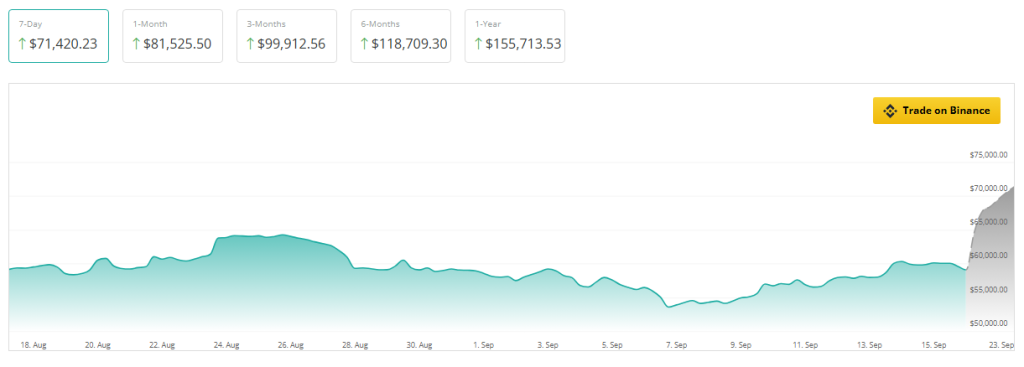 Titan underlined on the weekly chart a significant support level retest on September 13th, which historically has resulted in average price gains of 71%. According to his analysis based on historical data, Bitcoin might soon surpass the $92,000 mark, therefore attaining a new record for the currency.