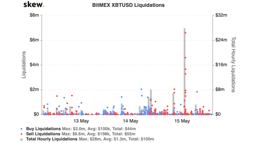 According to Skew, over $30 million in positions were liquidated yesterday as a result of this recent turbulence.