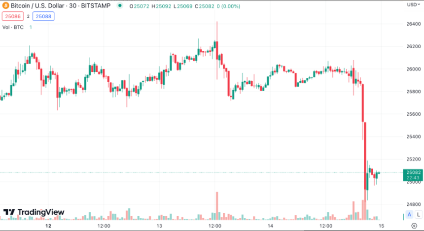 Bitcoin price had been stable around $26,000 for the past few days as the market processed the SEC’s lawsuit against Binance and Coinbase and rising macroeconomic anxiety about interest rate signals from the Fed.