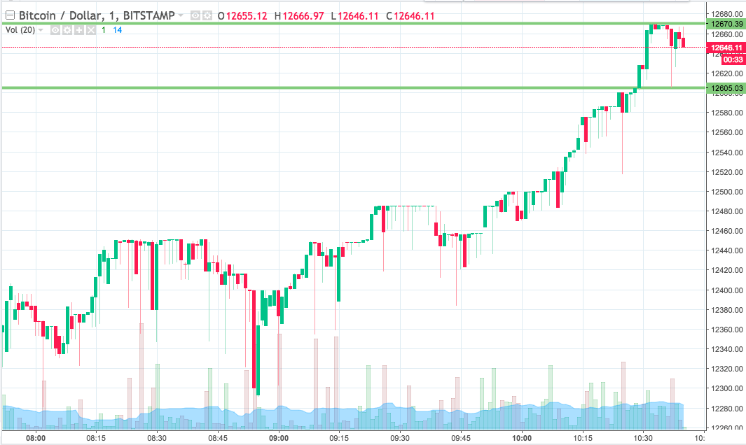 We aren’t even midway through the week and already the bitcoin price has broken through the $12,000 mark and, at least for the near term, looks set to hold above that level. Things overnight moved relatively slowly initially but once the just mentioned major threshold was taken out, things really started to pick up and we’re currently trading in around 12,670, meaning 13,000 isn’t an unrealistic target on an intraday basis – especially on the slightly wider time frames.