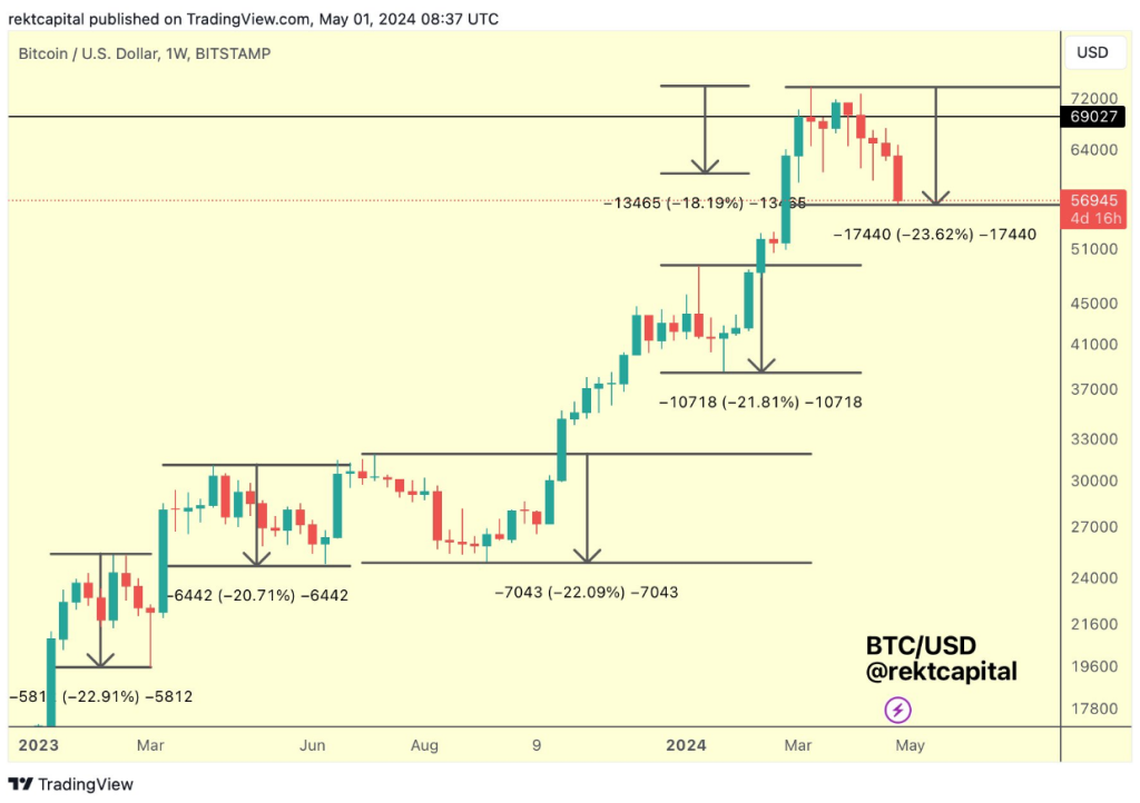 This is officially the deepest retrace in the cycle (-23.6%)$BTC #BitcoinHalving #Bitcoin pic.twitter.com/Gcapbl0Nu6