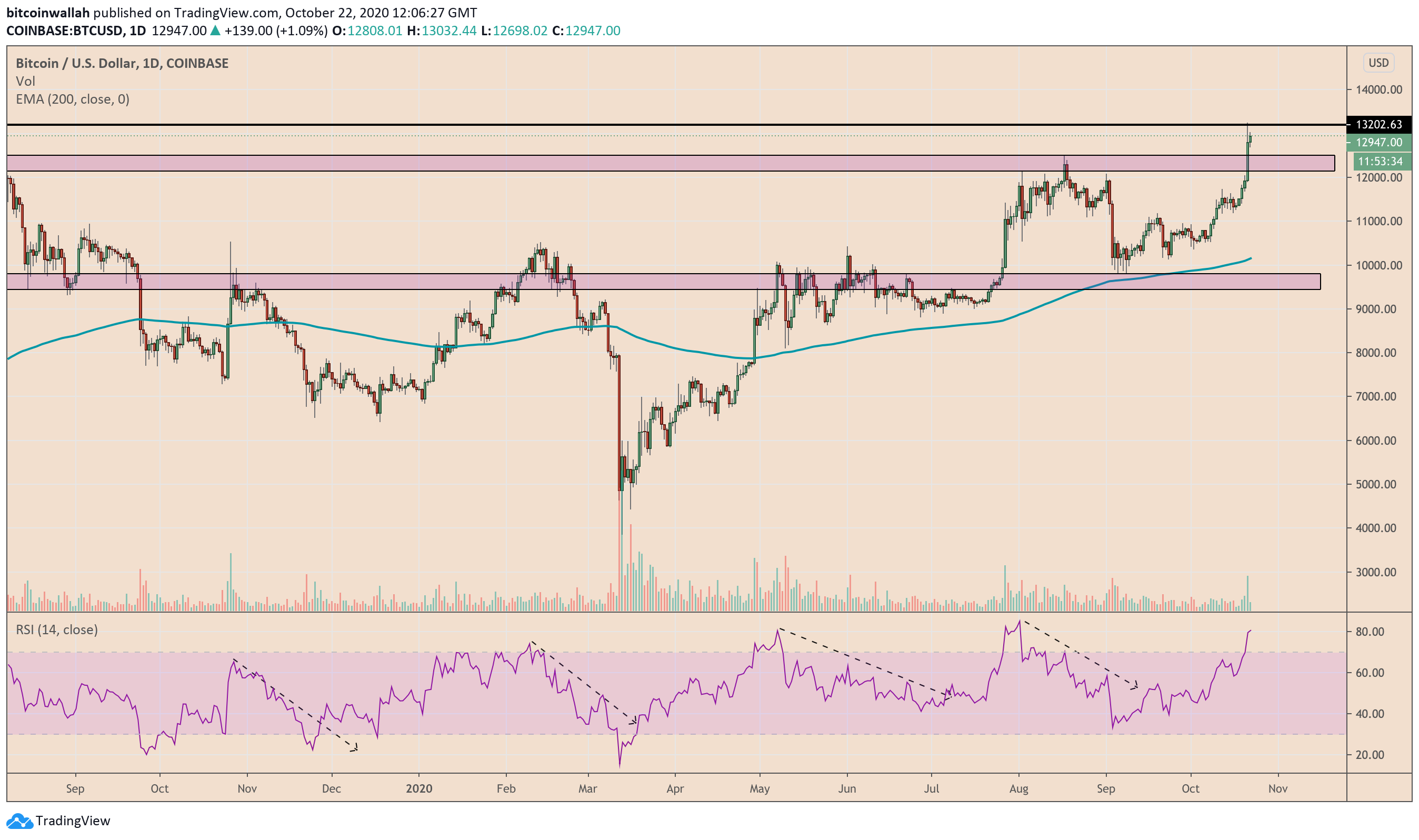 Bitcoin retests $13,000-resistance in the latest sign of extended upside momentum. Source: BTCUSD on TradingView.com