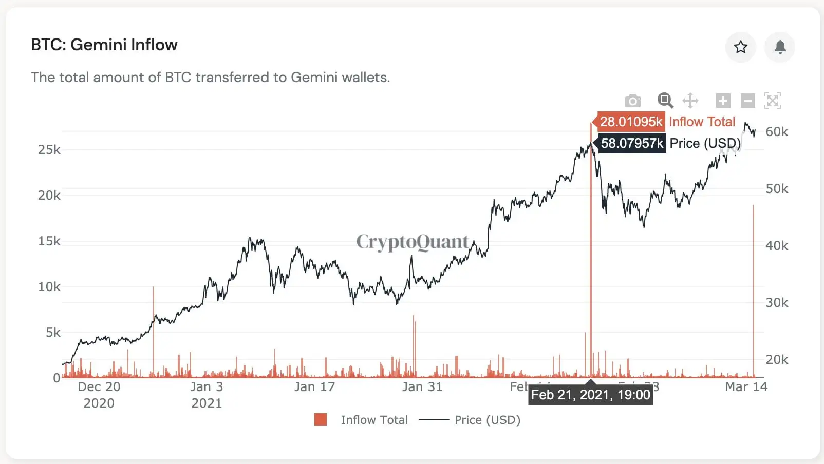 Analysts across the cryptocurrency market interpreted the $1 billion transfer to the US exchange as a sign of a major dump ahead. CryptoQuant CEO Ki-Young Ju was quick to point out the correlation between higher Bitcoin inflow and its spot prices. He published a chart that showed a spike in Gemini’s Bitcoin inflow on February 21, which followed a downside correction of more than 26 percent.
