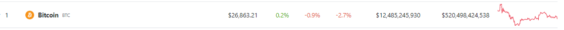 Bitcoin’s struggle to maintain its value has continued, with the cryptocurrency experiencing a 24-hour loss of nearly a percent, currently trading at $26,863 on CoinGecko. Furthermore, its seven-day decline of 2.7% reflects a persistent bearish trend in the market that has many investors concerned.