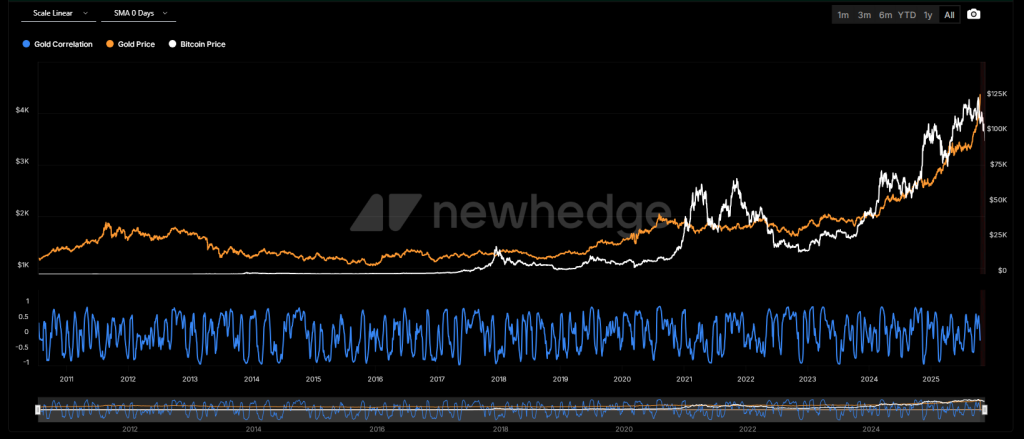 Bitcoin and gold correlation. Source: Newhedge.
