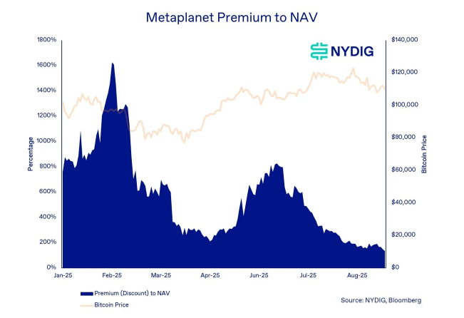 Companies often used as proxies for Bitcoin gains — names like Metaplanet and Strategy — have seen that gap compress. In plain terms, stocks that once traded at a healthy premium to the coins they own are now much closer to their NAVs.