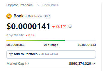 BONK price action. Source: Coingecko