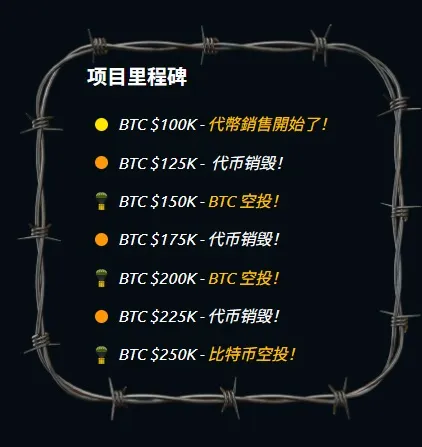 所有里程碑獎勵都已預先編碼,當 BTC 突破特定價格門檻時,持有 BTCBULL 的用戶將實際獲得 BTC 空投獎勵。