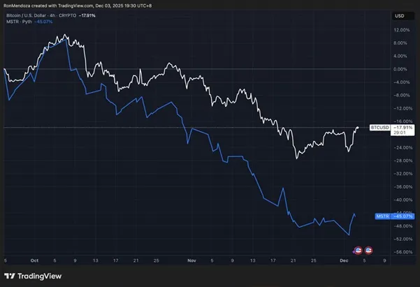 而且 Strategy 這套打法要成立的前提,是比特幣價格必須持續上行——這一點正被空頭/熊方挑戰。如果下行壓力延續,任何“重倉 BTC 的國庫/財庫策略”都將越來越難跑贏其所持有的 BTC 本體。