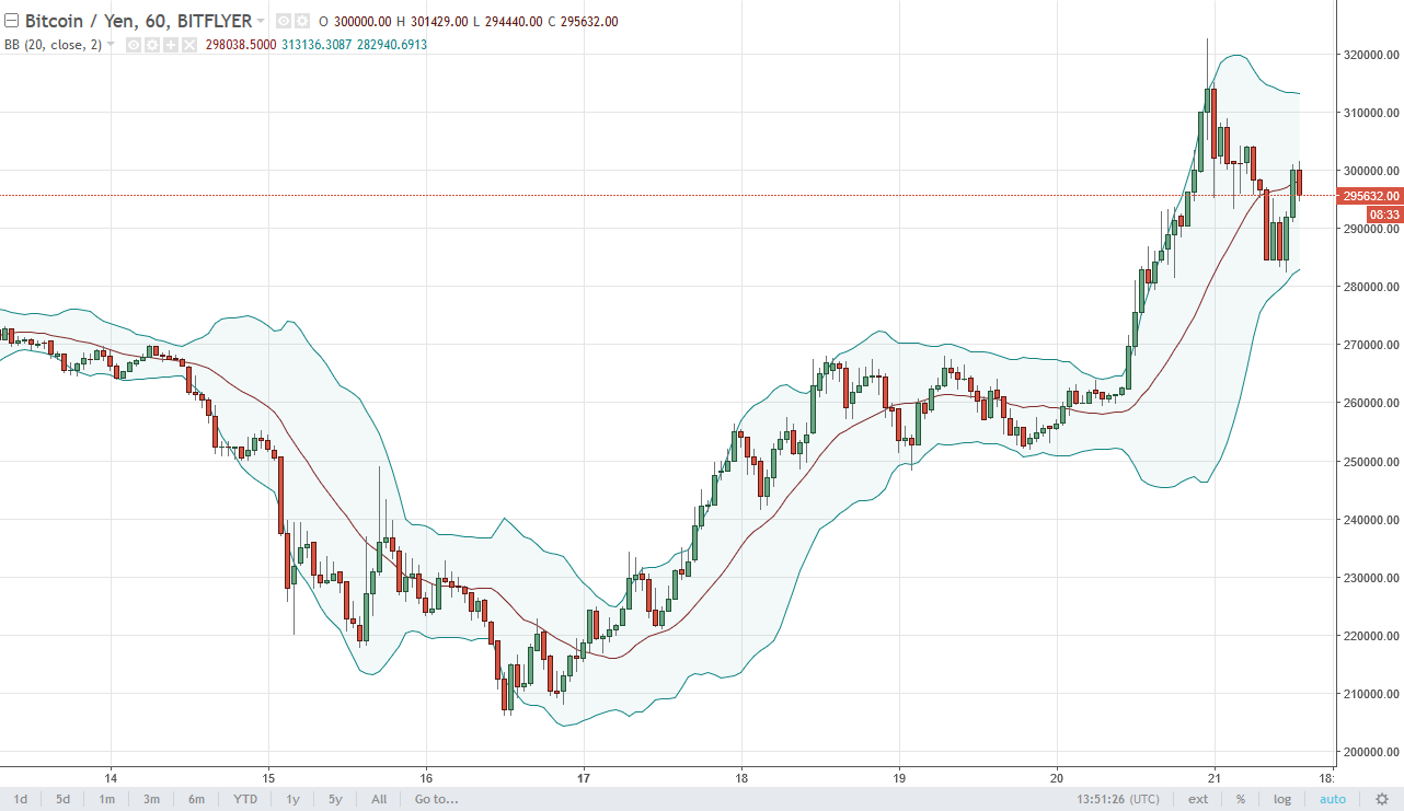 Bitcoin also fell against the Japanese yen as the ¥300,000 level offered a bit of a psychological resistance. However, it’s probably only a matter of time before we break above that level, so I am bullish of this market and think that a clearance of the ¥300,000 level should send this market towards the ¥310,000 level. Expect to see support near ¥290,000.
