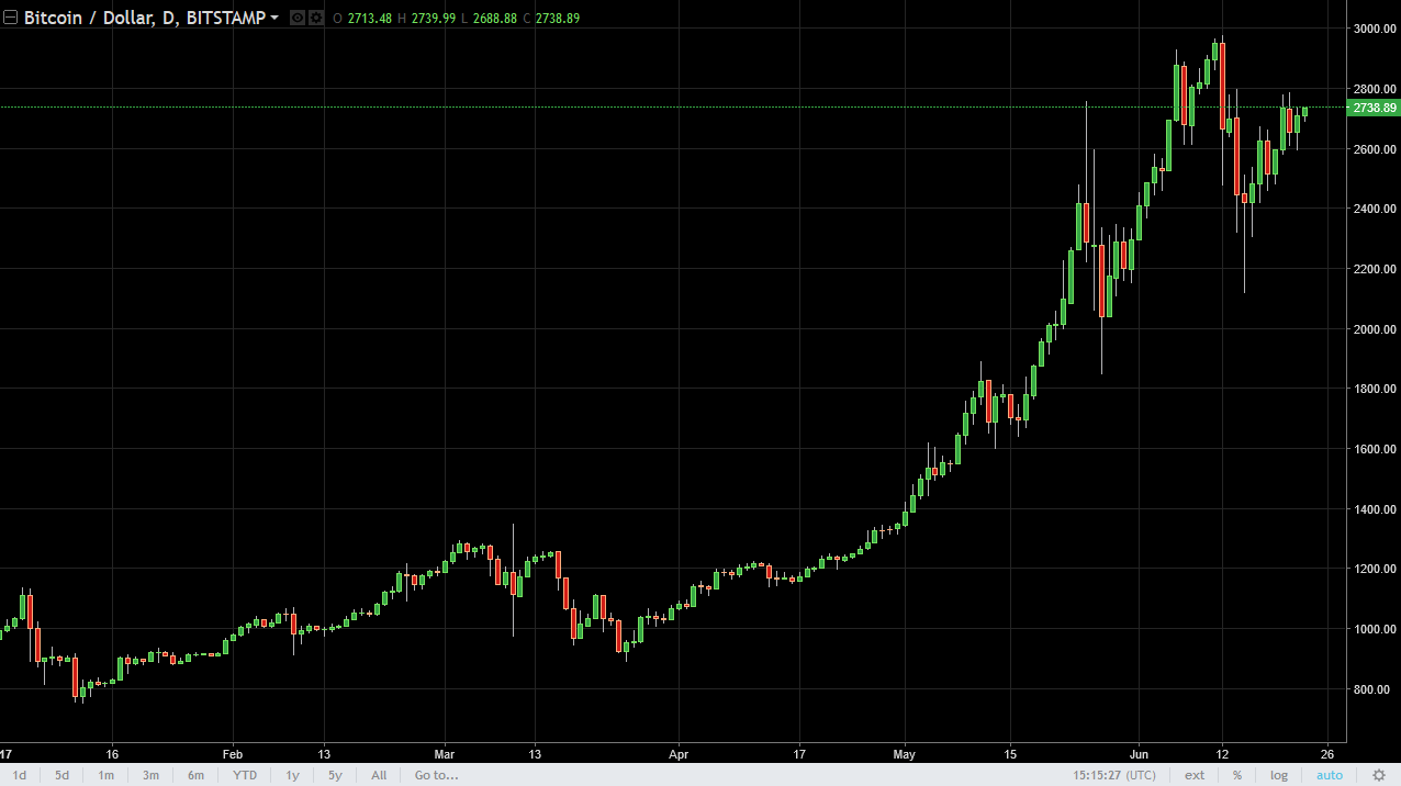 Bitcoin initially tried to pull back slightly on Friday, but bounced higher as it looks like we are going to head to the 2800 level. A break above there should send this market towards the 3000 handle, but it may take some time to get there. Ultimately, I think pullbacks continue to offer buying opportunities, and eventually we will break above there. This is a bullish market, and the recent pullback has offered a bit of value.