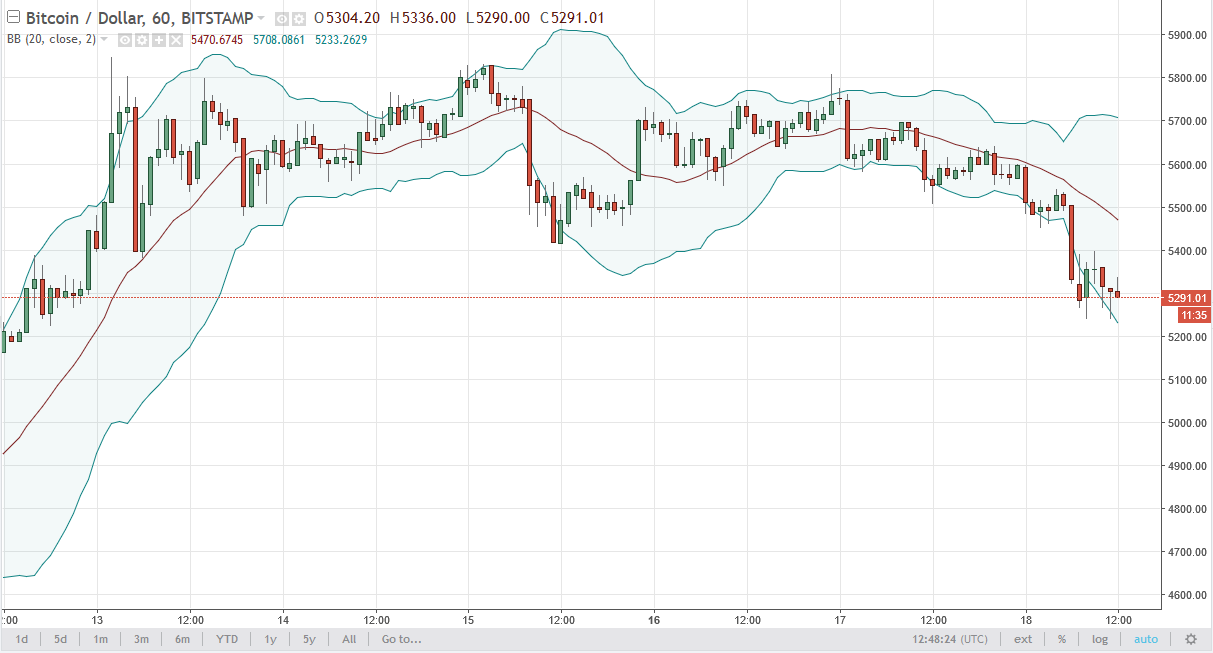 Bitcoin fell slightly during the day on Wednesday, reaching below the $5300 level. There is plenty of noise around this area, so it’s likely that if we can rally from here, that support will have shown itself to be important. Otherwise, if we break down below the $5200 level, the market should then go down to the $5000 level. Longer-term though, I believe that somewhere in this general vicinity, we will find enough support to turn things around and start going long again.