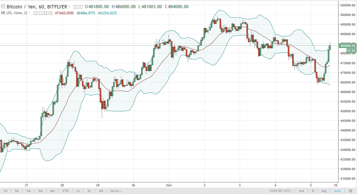 Bitcoin also rallied against the Japanese yen, testing the ¥485,000 level. I think we will eventually go looking towards the ¥500,000 level, so I think it’s a short-term pullback that you are looking for to start going long again. I have no interest in shorting the Bitcoin market overall, and certainly not against the Japanese yen. I believe that buying on dips continues to be the best way to trade this market.