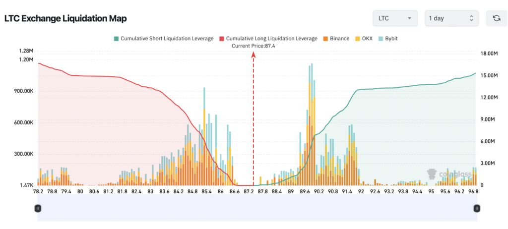 Analysts estimate that a mere 10% price increase, propelling LTC to $96, could trigger liquidations worth $16 million for short sellers. Conversely, bullish traders have amassed leveraged long positions exceeding $16 million around the current price point. This leverage disparity empowers the bulls to potentially drive the price towards the coveted $100 milestone in the coming days.
