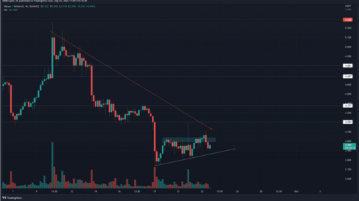 Earlier, its price has once again dropped below the $4 range. On the 1-hour chart, it retreated once again or back to the $4.3 level following its latest setback.