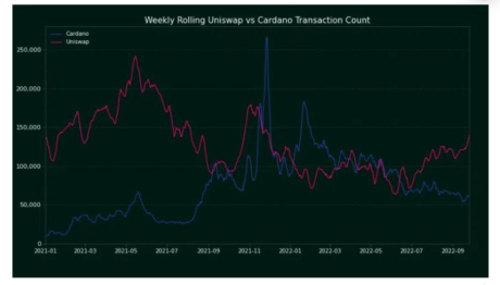 Uniswap does substantially more transactions than Cardano pic.twitter.com/wg0fNoFPck