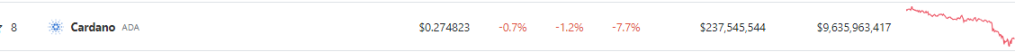 Despite the advancements, ADA’s recent price performance has sparked concerns. With a current value of $0.274 according to CoinGecko, the cryptocurrency has experienced a decline of 1.2% in the last 24 hours alone. A more prolonged seven-day slump paints a bleaker picture, with a decline of nearly 8%.