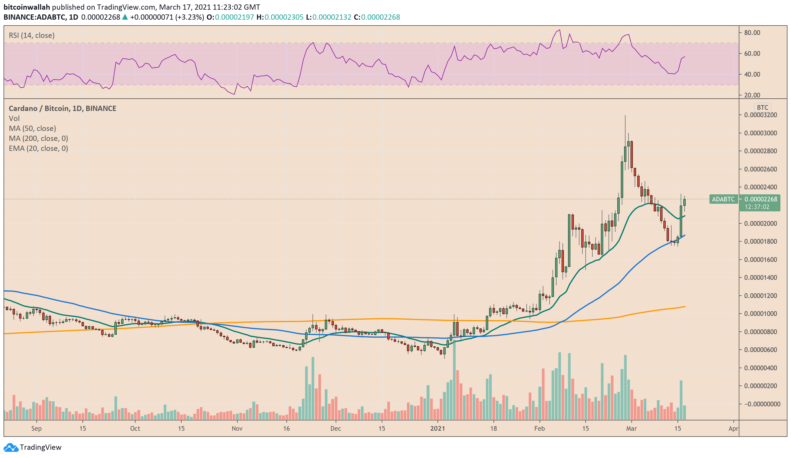 ADA jumped about 20 percent against bitcoin in the last 24 hours, showing that traders decided to park their funds in the Cardano market on the latter’s near-term bullishness. That could be due to Cardano’s “Mary” update, which enabled users to create their unique tokens, including NFTs. These are digital files that represent ownership of a certain asset.