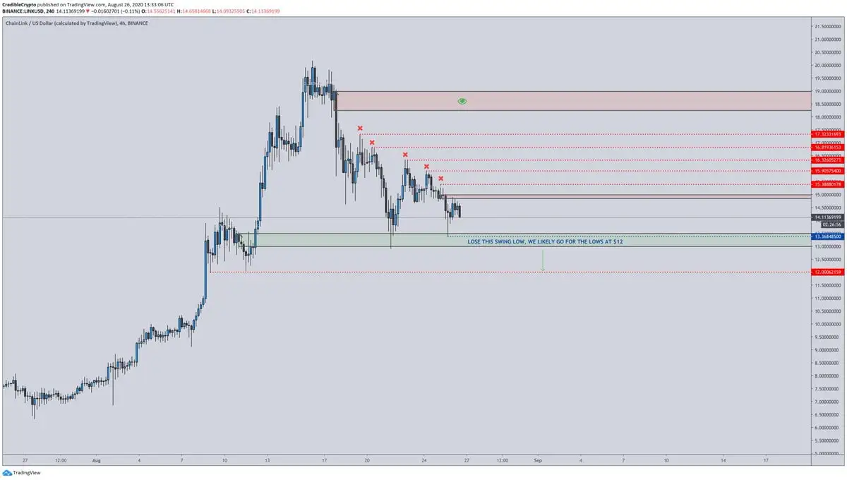 Another analyst explained that he could see Chainlink pushing up towards $19.00 in the near-term, but this strength would be invalidated if it breaks below $13.50.