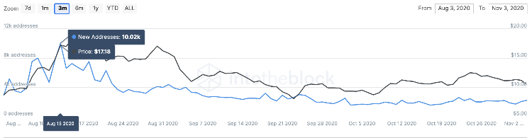Chainlink's new addresses are declining. Source: IntoTheBlock