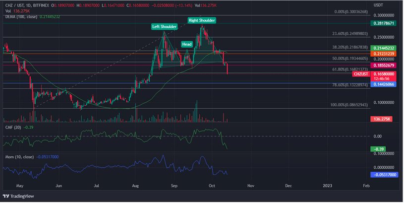 CHZ is presently in one of the worst possible situations for a cryptocurrency. With the $0.28 resistance displaying strength and the $0.18 support line having been breached, a decline towards the key $0.14 level is expected.